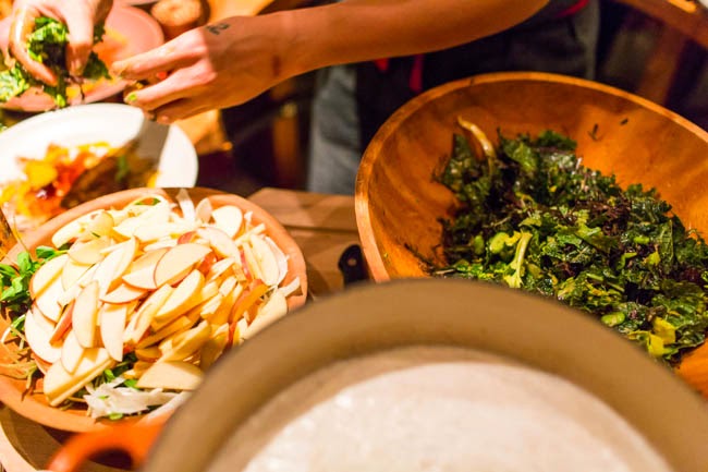 A couple of weeks ago, we hosted two private parties in The Salon. Each had 12 guests who sat around the cooking table and got to see our Chef Matt prepare most everything table side, including fresh, warm Ricotta Cheese, my personal favorite thing ever. Here’s a look at the menu: