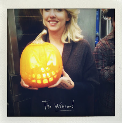 We got a bunch of pumpkins from none other than Mc Grath Farms that were just sitting around so we had a pumpkin carving contest over here at Heirloom. The winner was determined by a random passerby who we bribed with a package of lasagna cupcakes. We picked ourselves a linguist because this guy gave us the translation of “pumpkin” in about nine different languages. He could’ve been making it all up on the fly, but we were all impressed nonetheless.