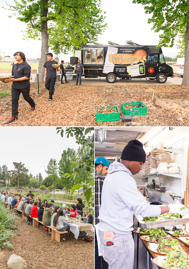 A couple of months ago we were approached to team up on a fundraiser for a high school garden. A high school what? Oh, I needed to hear more, so much more. It turns out that this school in Pasadena, John Muir High, not only educated David Lee Roth (class of ’72) and Rodney King (Class of ’87) but it currently has an operating edible garden that supports it’s lunch program and a CSA. Get this, kids work the land here, creating a local food system and receive credit for PE. What?! I LOVE it, all of it! We scheduled a site visit and were blown away by how expansive the garden was so we knew we needed to go big and bring our Food Truck and invite as many people as possible to help raise money for this important program.