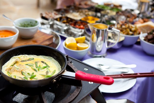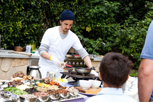 Guests chose from Confit Baby Artichokes, Grilled Vegetables, Pork Belly, Pickled Fennel, Sweet and Sour Onions, Smoked Ham, Charred Cherry Tomatoes, Andouille Sausage, Wild Mushrooms, Fresh Spring Peas, Duck Bacon (yes, duck) and several types of cheeses.